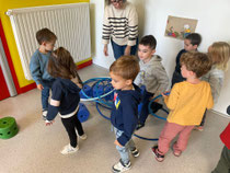 Dans la journée, des temps communs sont bien sûr préservés: les temps de rituel, les temps de sport, les jeux de société, les temps de chants et comptines, des temps d’activités « classiques ».