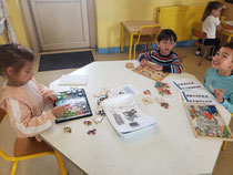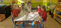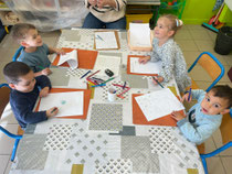 L'équipe enseignante a fait le choix de se former et de travailler conjointement l’an passé afin que les trois classes de maternelles puissent suivre la même pédagogie de classe en classe.