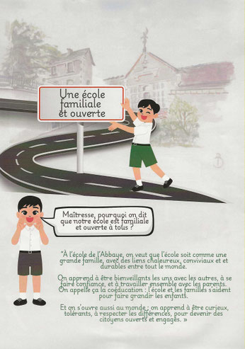 Une école qui rayonne par ses valeurs, ses actions et sa présence dans son environnement en participant à l’écosystème local (familles, quartier, paroisse...).